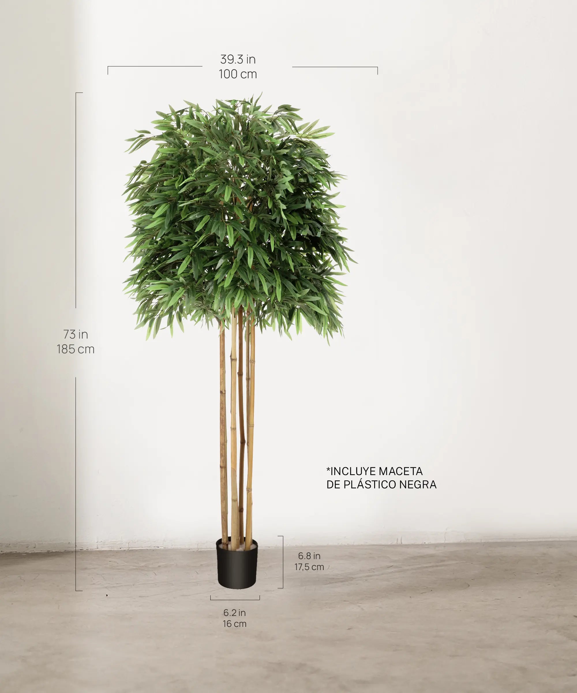 A diferencia de otros modelos, el bambú artificial de 185 cm presenta una copa más compacta y redonda, lo que aporta una silueta más decorativa y uniforme. Ideal para aportar estructura y suavidad visual en espacios de estilo contemporáneo o zen.
