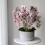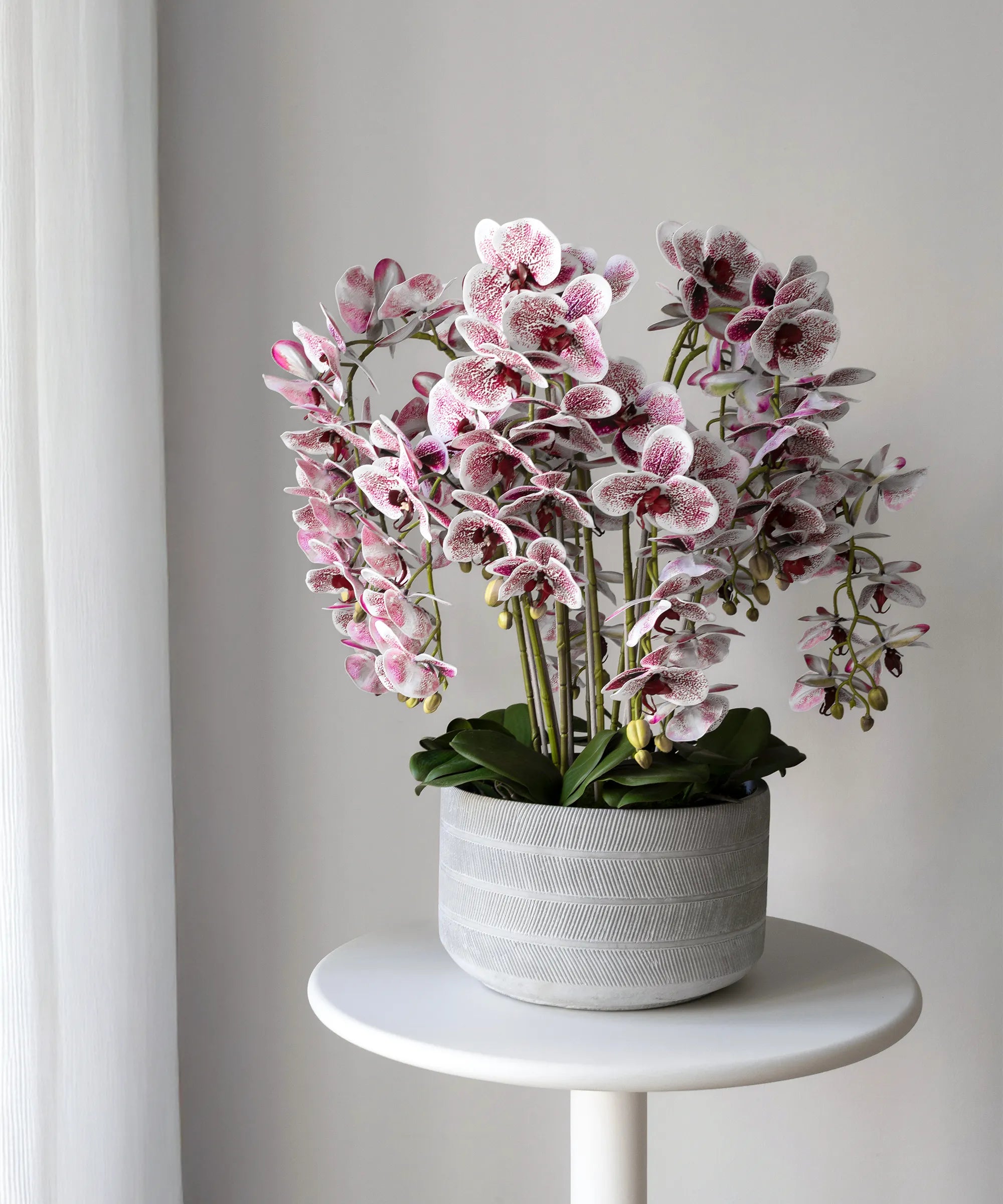 Dank ihrer 10 Blumenstängel eignet sich diese künstliche Orchidee perfekt als Blickfang in Eingangsbereichen, Esszimmern oder Fluren mit guter Sichtbarkeit. Sie ist Teil unserer exklusiven Auswahl an künstlichen Orchideen, die Räume mit langlebiger Eleganz und Stil beleben. Ein Klassiker, neu interpretiert für die Dekoration mit künstlichen Pflanzen, mit dem stilvollen MAIA SHOP-Design.