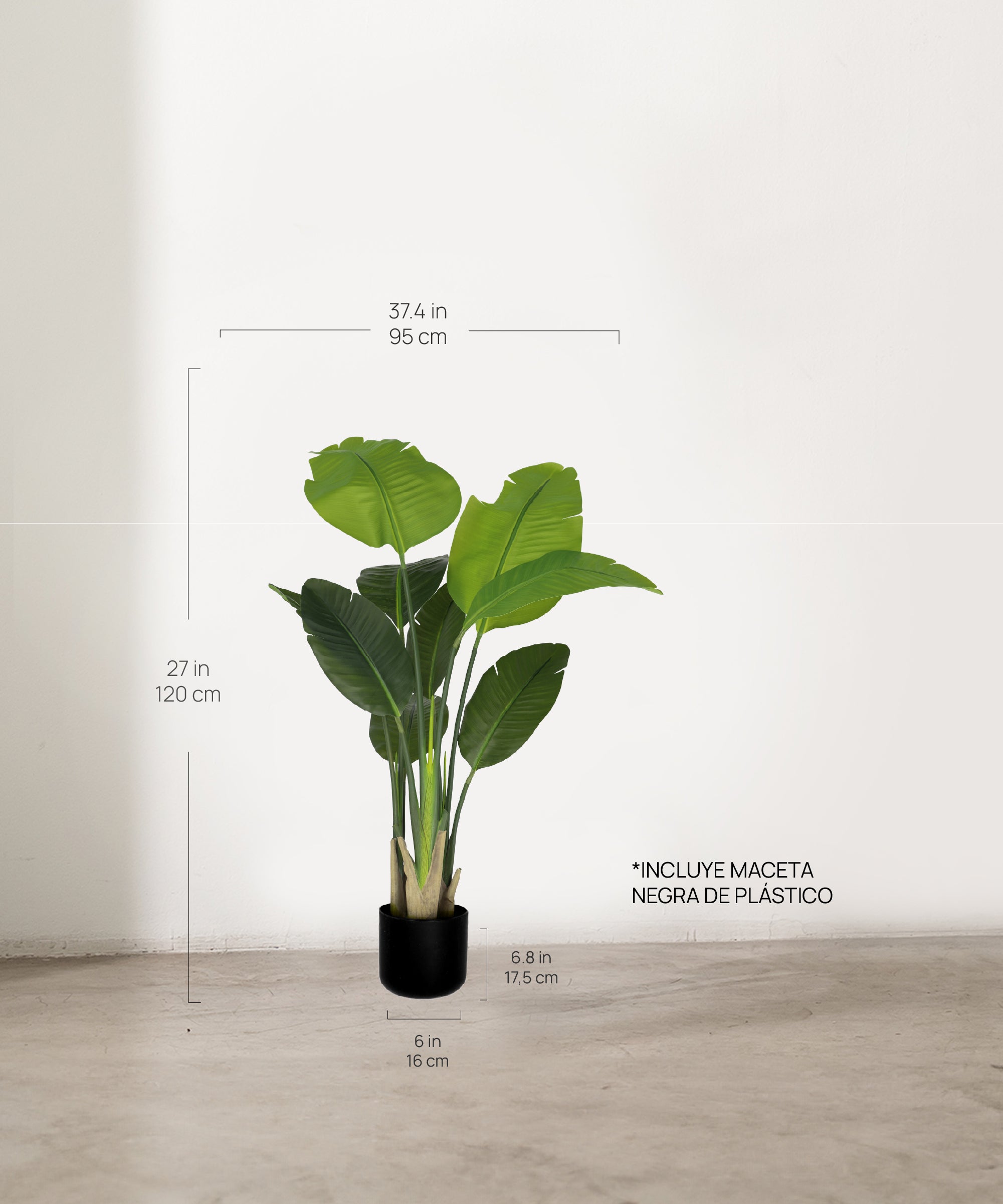 Com 120 cm de altura, esta planta artificial tropical é perfeita para salas, entradas, escritórios ou qualquer canto que necessite de um toque de vida e verticalidade com estilo.