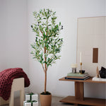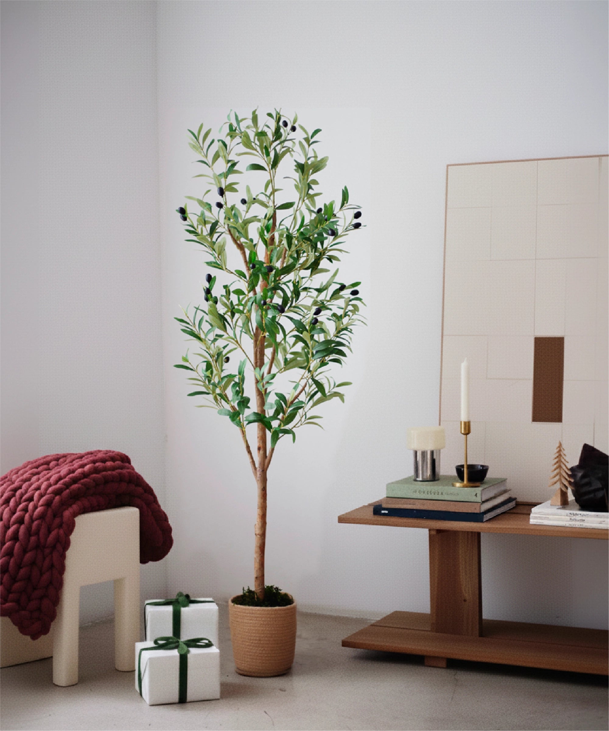 Com folhas suaves ao toque e pequenas azeitonas decorativas, esta planta artificial reproduz com fidelidade a essência do olivo mediterrâneo. Sem necessidade de rega ou cuidados, mantém o seu aspeto impecável durante todo o ano.